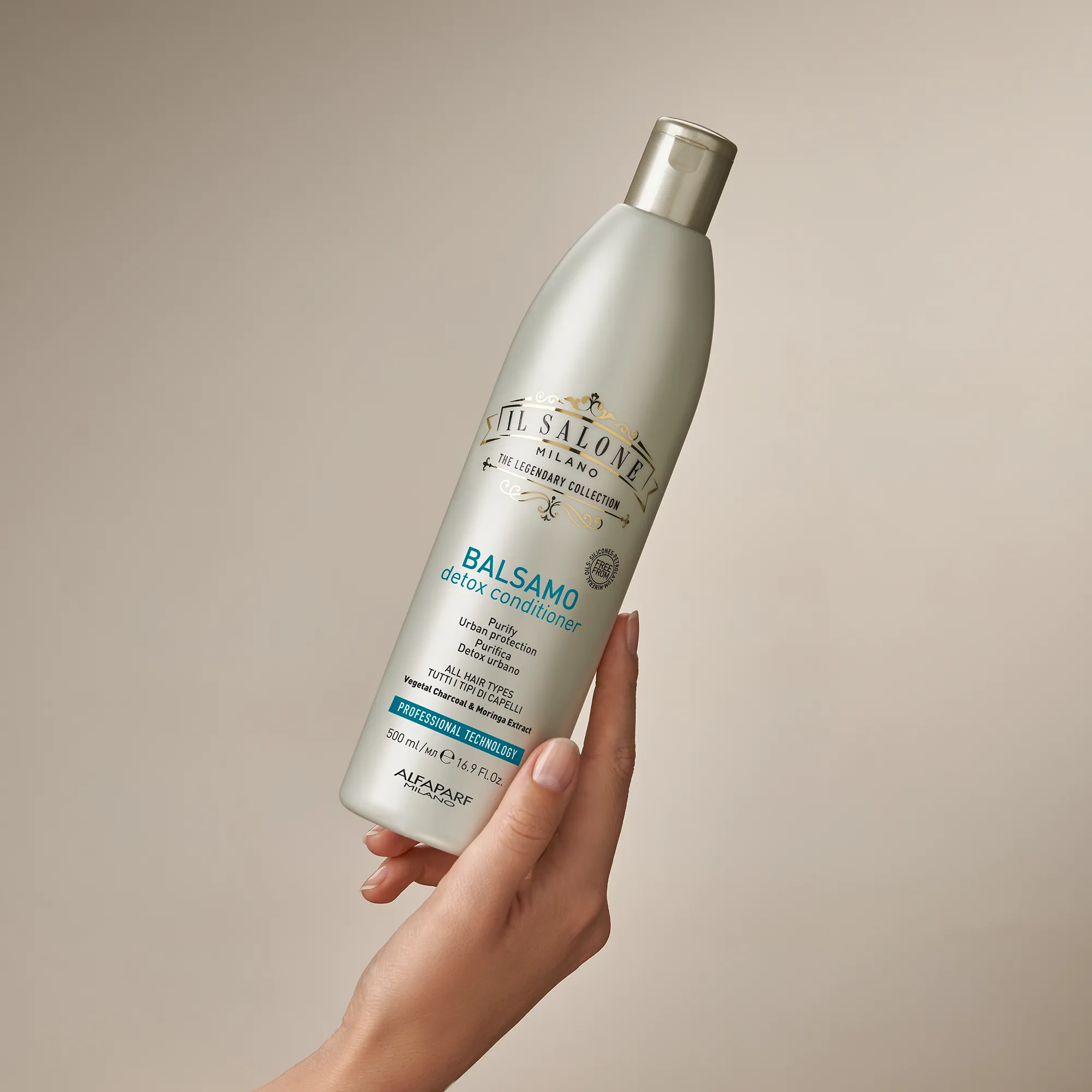 პროფესიონალური შავი კონდიციონერი ყველა ტიპის თმისთვის. მცენარეული ნახშირის შემცველი ფორმულა შთანთქავს მინარევებს, ასუფთავებს თმას დეტოქსიკაციისგან და იცავს მას დამაბინძურებლებისგან*. აქტიური ინგრედიენტების სპეციალური ნაზავი აღადგენს თმისა და თავის კანის ბუნებრივ ბალანსს. გამოიყენება პარიკმახერების მიერ.