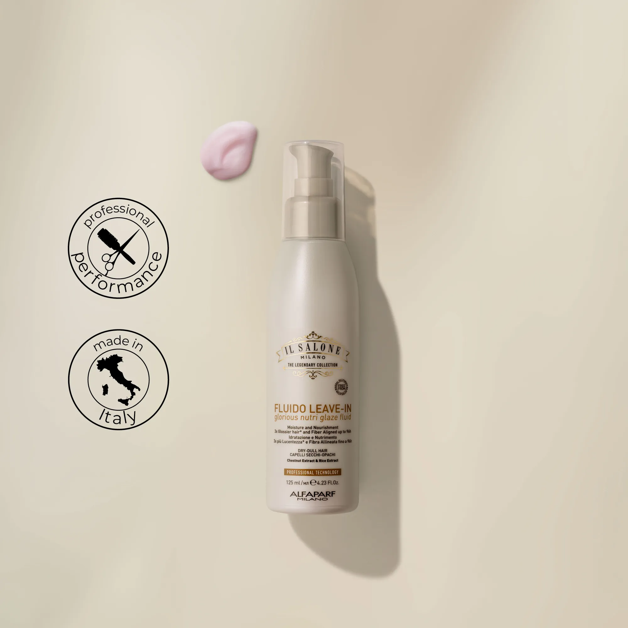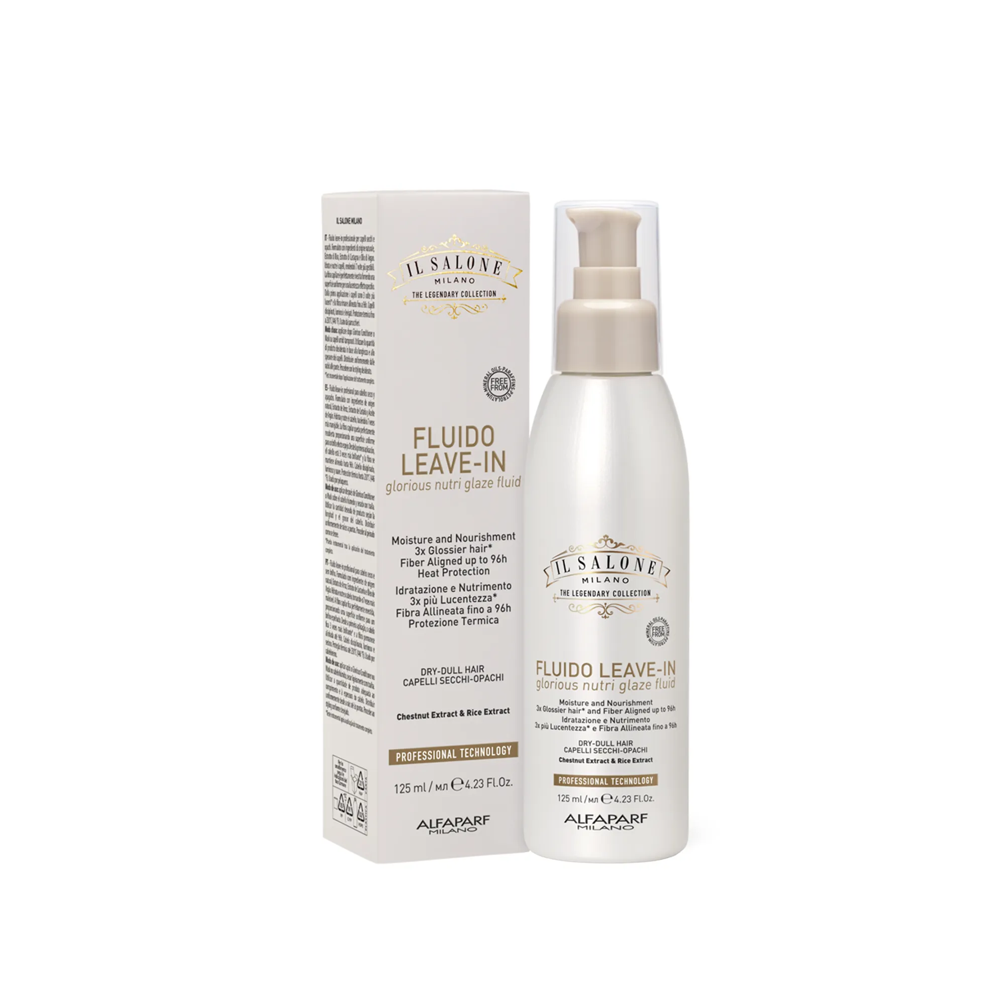 პროფესიონალური, დაუზიანებელი სითხე მშრალი და უფერული თმისთვის. დამზადებულია ნატურალური წარმოშობის ინგრედიენტებით, ბრინჯის ექსტრაქტით, წაბლის ექსტრაქტით და არგანის ზეთით. ატენიანებს და კვებავს თმას, რაც მას 7-ჯერ უფრო ადვილად დასამორჩილებელს ხდის. თმის ბოჭკო იდეალურად არის დაფარული, რაც უზრუნველყოფს ერთგვაროვან ზედაპირს სარკისებრი ბზინვარებისთვის. პირველივე წასმიდან თმა 3-ჯერ უფრო ბზინვარება* და თმის ბოჭკოები 96 საათამდეა გასწორებული. დისციპლინირებული, მოვლილი და გლუვი თმა. თერმული დაცვა 230°C (446°F)-მდე. გამოიყენება პარიკმახერების მიერ.